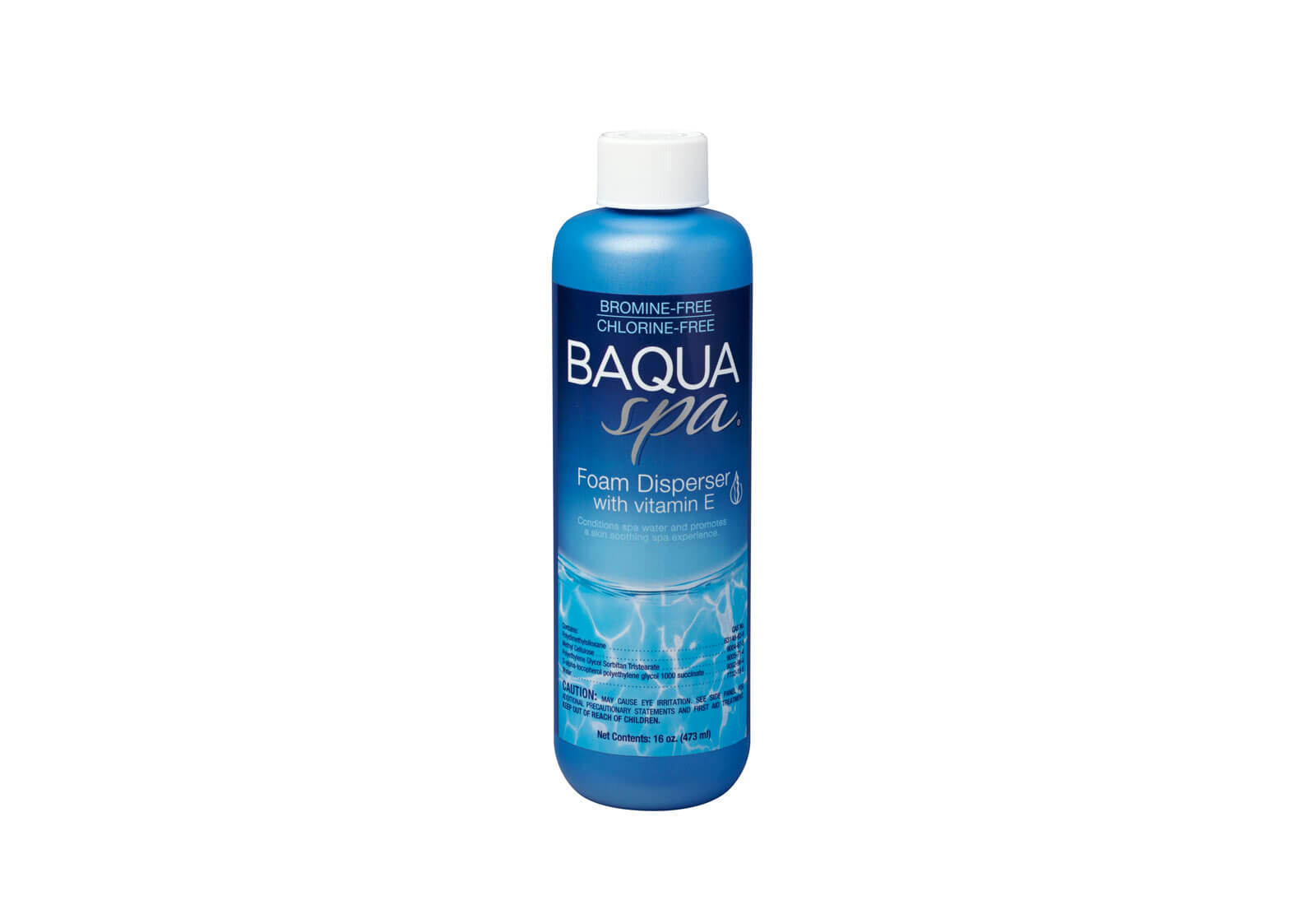 Add 1/4 ounce per 150 gallons of water to disperse foam, repeat if necessary. If foam persists after second treatment see a BAQUA Spa® Dealer for assistance,