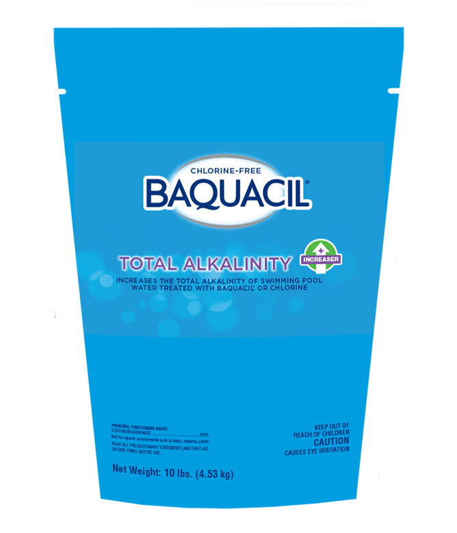Test water every week. 1.5 lbs of total alkalinity increaser per 10,000 gallons of water will adjust the level by 10 ppm in a 10,000 gallon pool. Broadcast product with filter running and retest in 24 hours adjust as necessary to achieve 80-150 ppm total alkalinity.